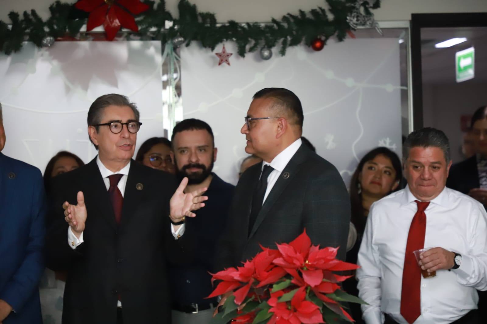 En compañía de los Magistrados, Fernando Ignacio Tovar y de Teresa, Presidente de la Séptima Sala, Jorge Arturo Flores Ochoa y José Manuel Pozos Valdivia, el Magistrado Presidente del Tribunal Federal de Conciliación y Arbitraje, Cristóbal Arias Solís, compartió un mensaje de felicitación y sus mejores deseos en estas fechas, para las y los integrantes de esta Sala.