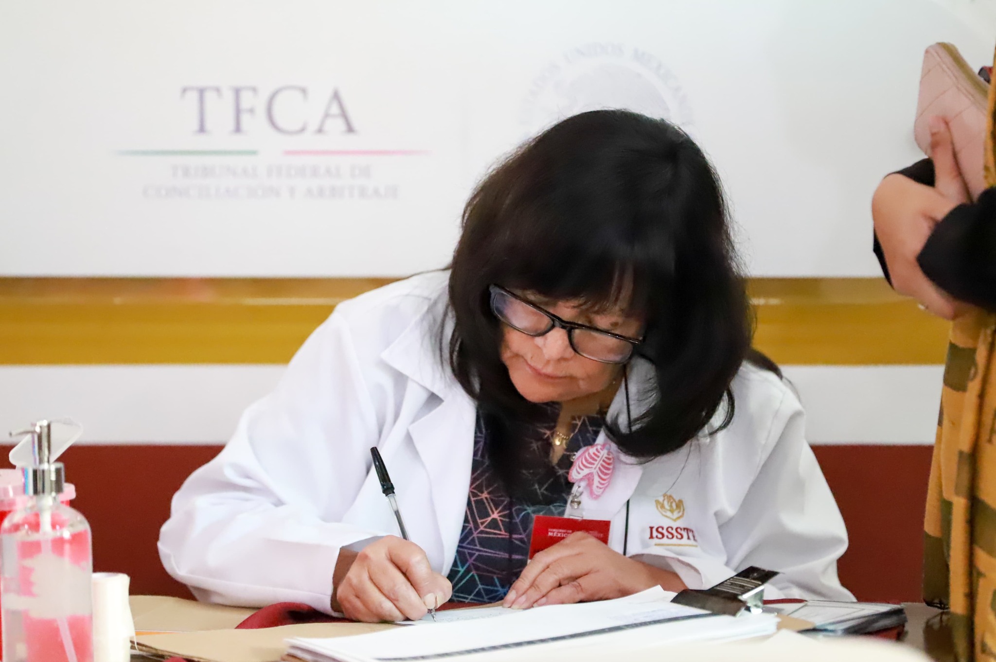 Acompañado por la Magistrada Adelaida Alvarado Alonso y los Magistrados Rosendo Gómez Piedra, Julio Dávila Aceves y Pedro Escárcega, así como por los dirigentes sindicales, del SITTFCA, Sandra Lozano, y del STTFCA Federico Chávez, el Magistrado Presidente Arias Solís agradeció la solidaridad de la Unidad “5 de Febrero del ISSSTE“ y de la Dra. Marisela Leyva Espejel, del Dr. Gerardo Chirinos Munguía y de las enfermeras Sandra Campos Aguilar y María de la Luz Baranda Iglesias para la realización de esta jornada en pro de la salud de los trabajadores de este Tribunal.