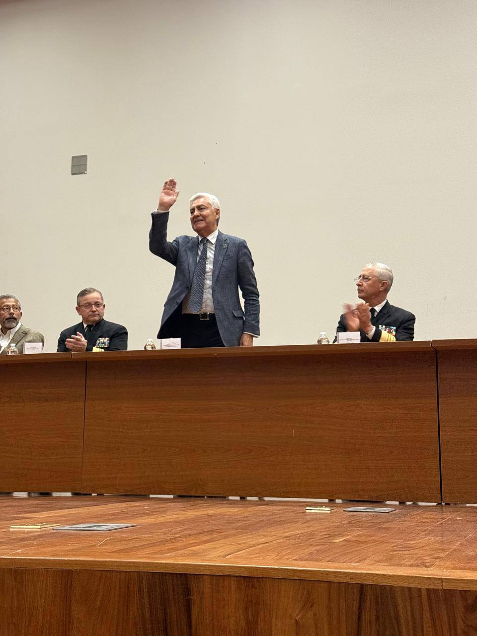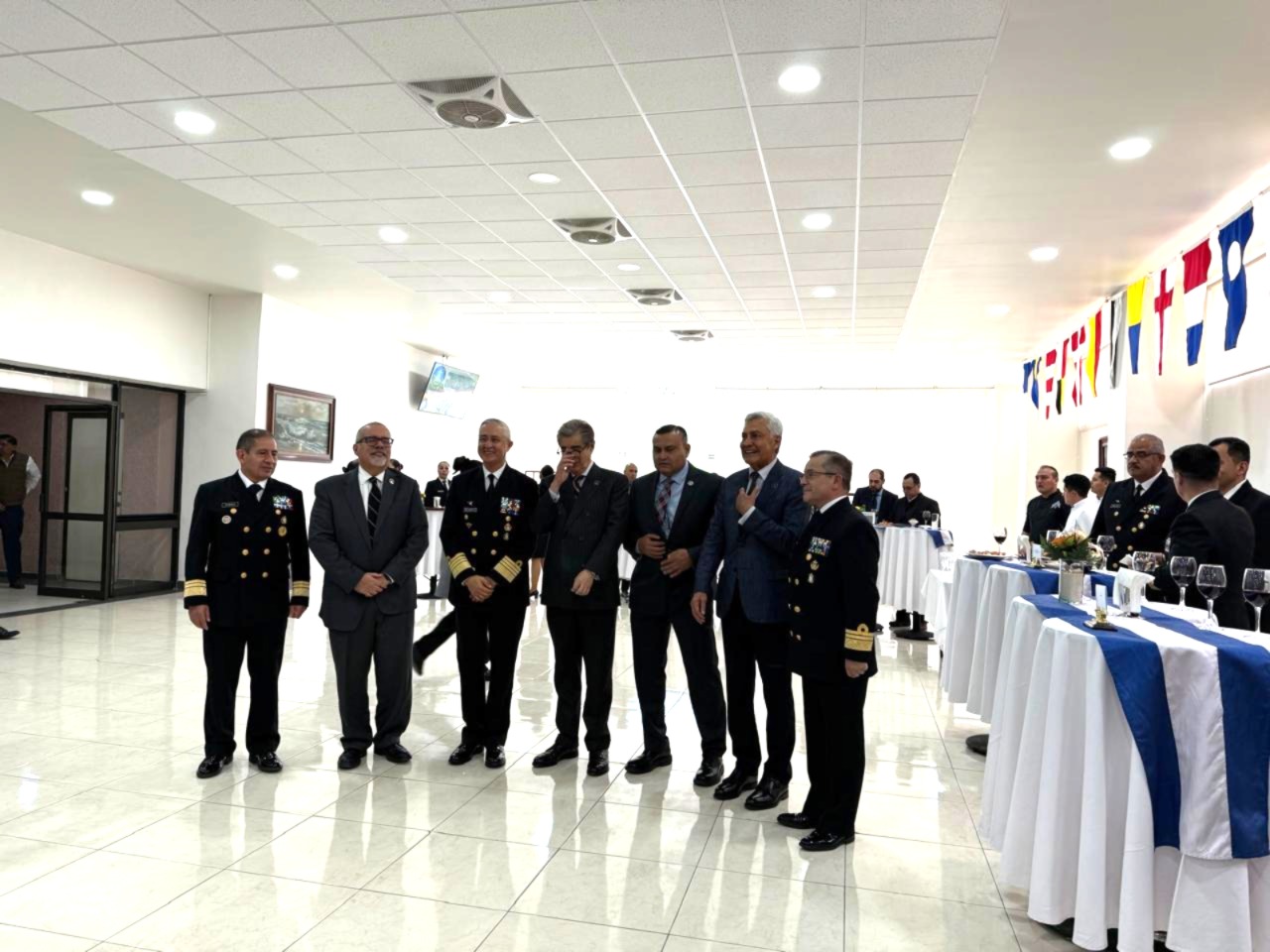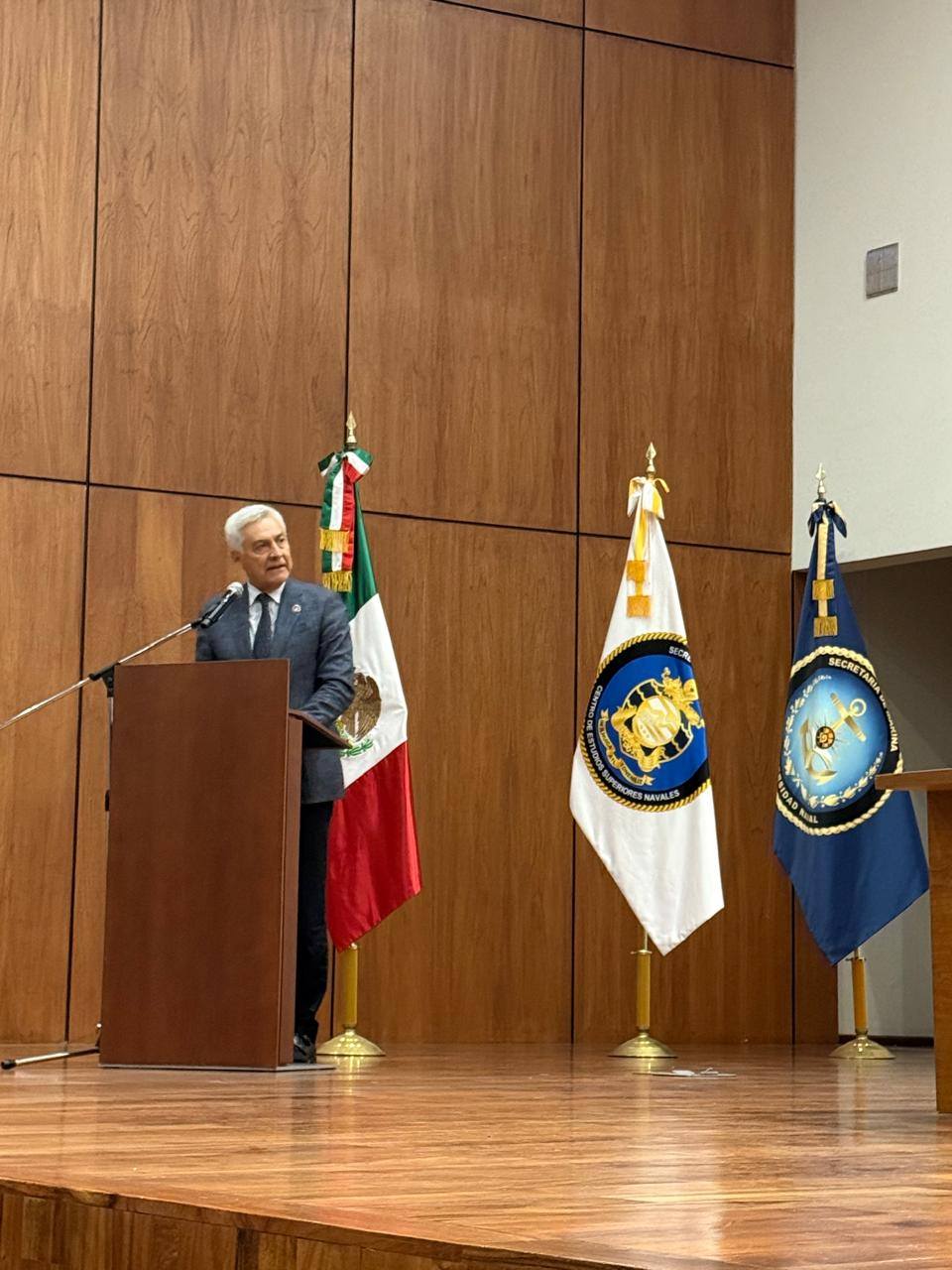 Las ceremonia de clausura fue encabezada por el Magistrado Presidente del TFCA Cristóbal Arias Solís, el Oficial Mayor de la SEMAR Almirante Francisco Escamilla Cázares, el Director del Centro de Estudios Navales Vicealmirante Rubicel Venebra Jaimes y el Rector de la Universidad Naval Vicealmirante Jorge Victor Vázquez Zárate.