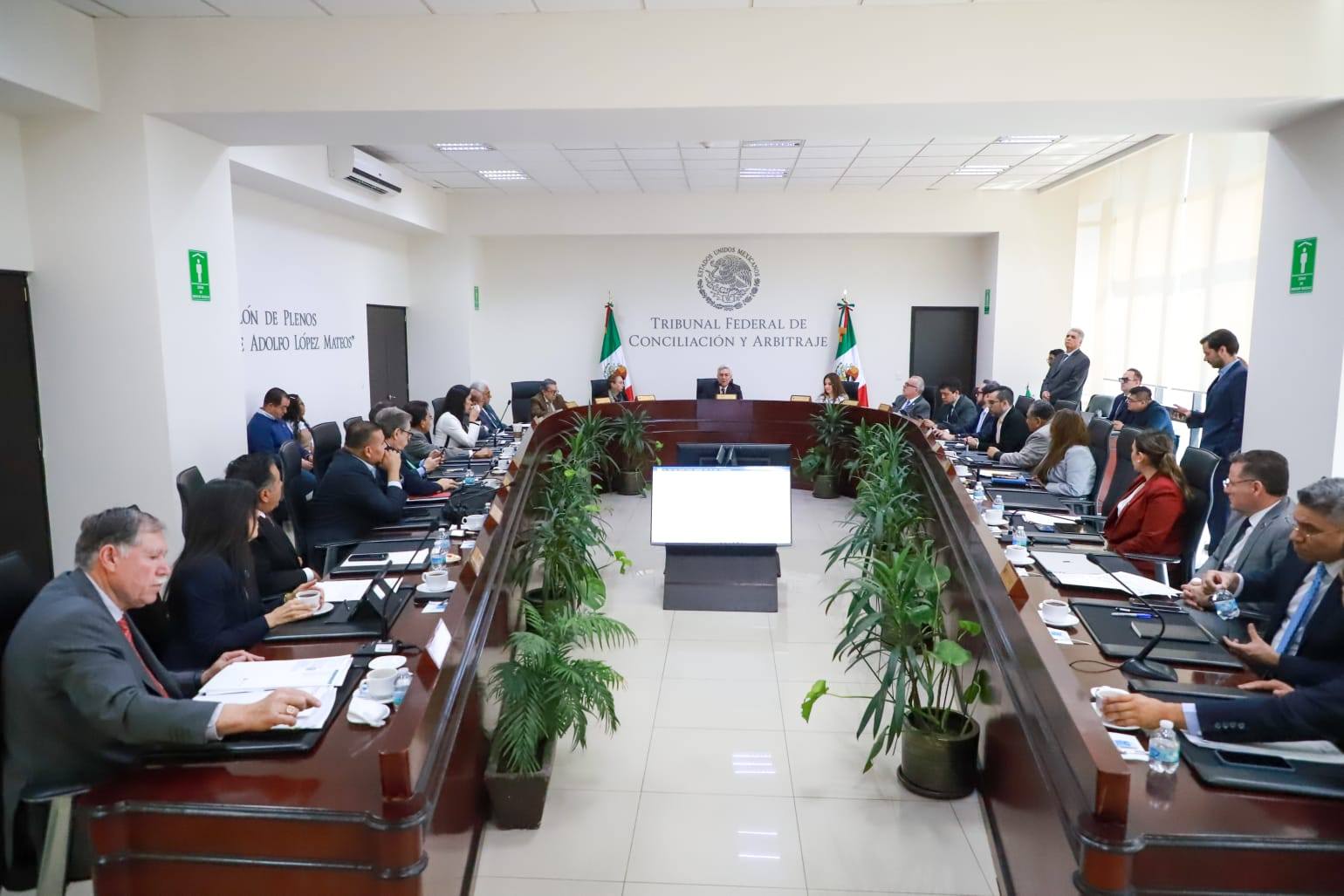 Reunión previa al Pleno, encabezados por el Magistrado Presidente del Tribunal Federal de Conciliación y Arbitraje.