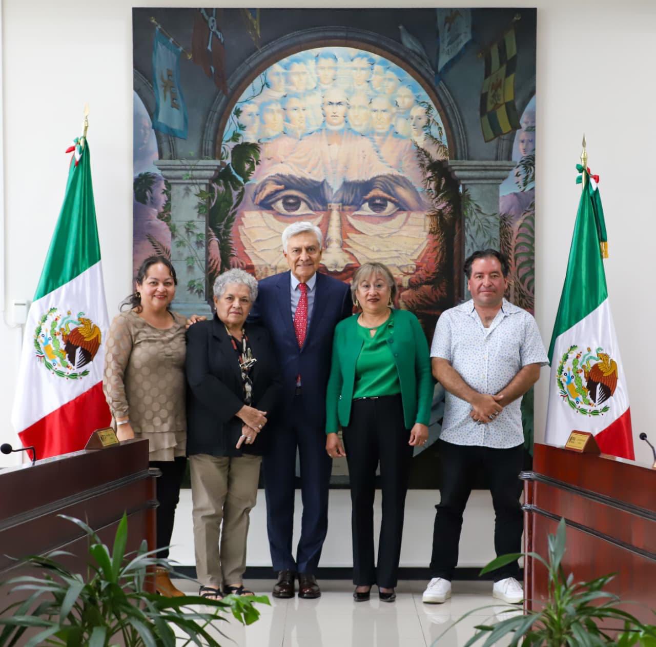 El Magistrado Presidente del Tribunal Federal de ConciliIación y Arbitraje, Lic. Cristóbal Arias Solís, se reunió con integrantes del Sindicato de empleados de Servicios Públicos del IMSS Bienestar, Sara Concepción Pérez Dimas, Ana Lilia Guillén Quiroz, Haidé Erika Barajas y Rafael Villaseñor Correa.