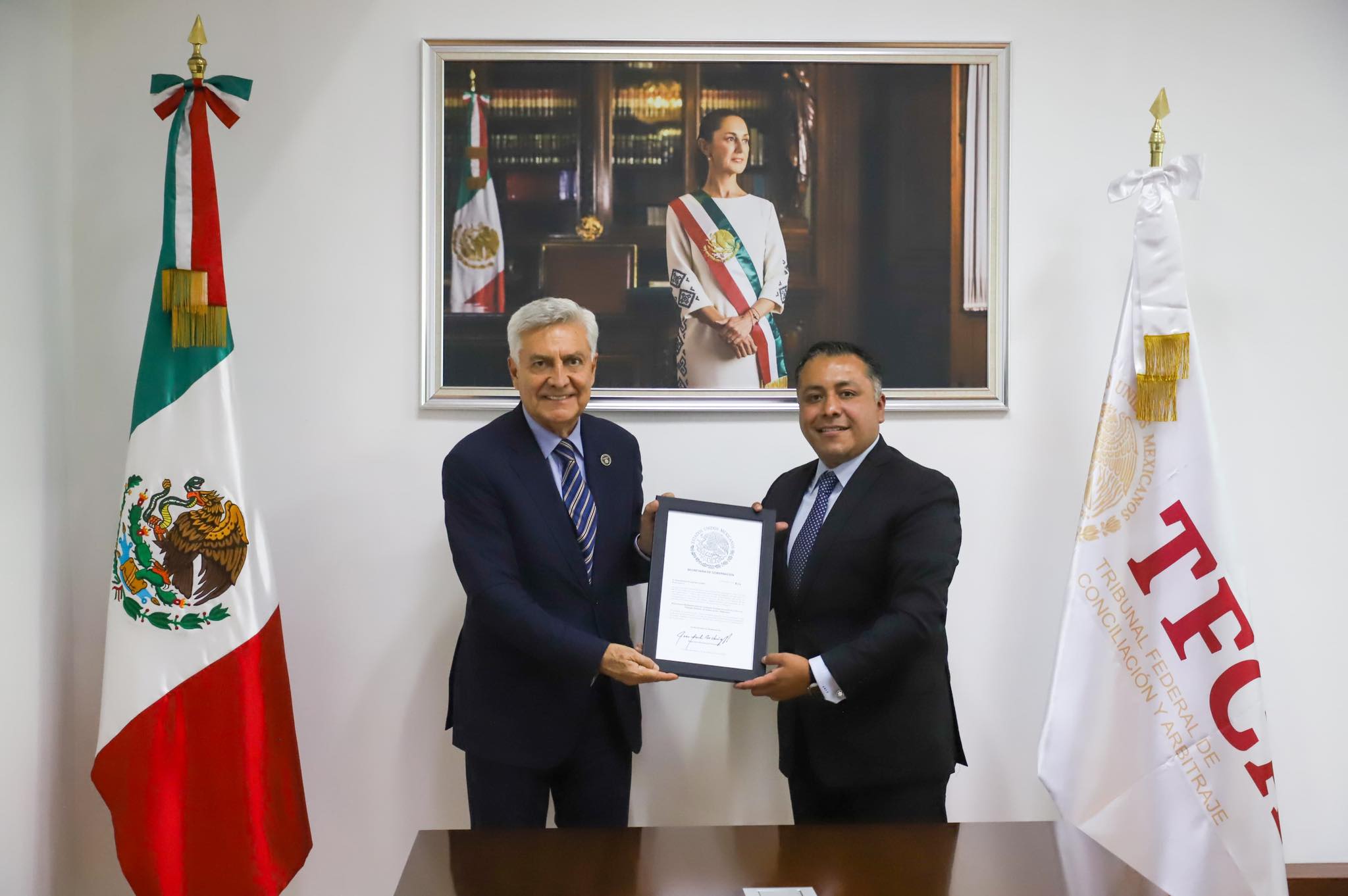 El Magistrado Presidente del Tribunal Federal de Conciliación y Arbitraje, Cristóbal Arias Solís, en representación de la Secretaria de Gobernación Rosa Icela Rodríguez, hizo entrega del documento que acredita como Magistrado Representante del Gobierno Federal al Lic. Joan Adrián Tolentino. Este nombramiento refleja la confianza en la capacidad del Magistrado Tolentino para preservar y seguir edificando la justicia laboral, contribuyendo así al fortalecimiento de este Tribunal.