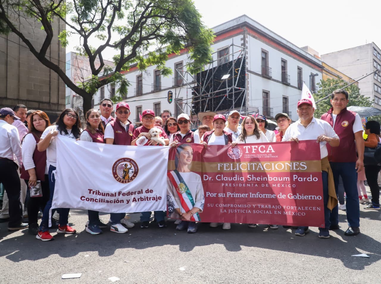 El Magistrado Presidente Cristóbal Arias Solís, y un numeroso contingente del TFCA, acudió al Zócalo de la Ciudad de México para participar en el acto de rendición de cuentas "La Transformación Avanza", con el que la Presidenta de la República concluyó su gira nacional para informar los logros de su gobierno.