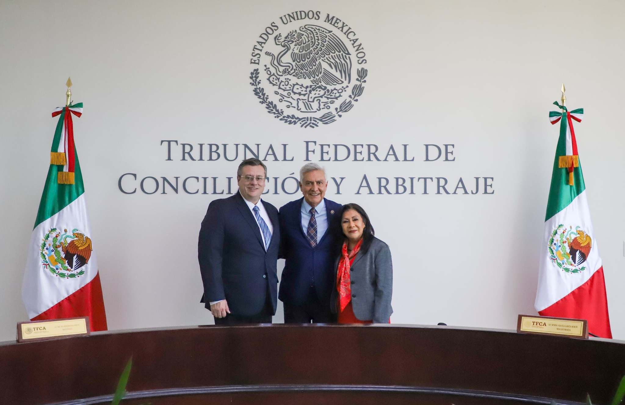 En seguimiento de las instrucciones de la Presidenta de México, Dra. Claudia Sheinbaum Pardo, de mantener el diálogo interinstitucional para lograr la justicia laboral, este día el Magistrado Presidente del Tribunal Federal de Conciliación y Arbitraje, Cristóbal Arias Solís, sostuvo una fructífera reunión de trabajo con la Presidenta del Tribunal de Justicia Administrativa de la Ciudad de México, la Dra. Estela Fuentes Jiménez y el Magistrado Andrés Aguilera Martínez.
