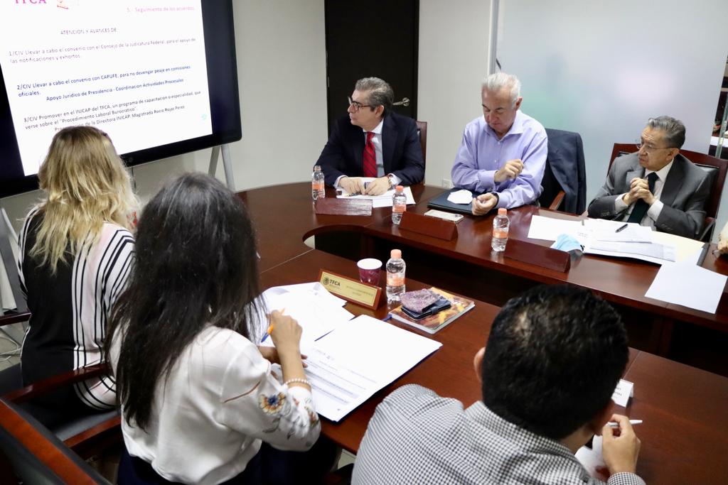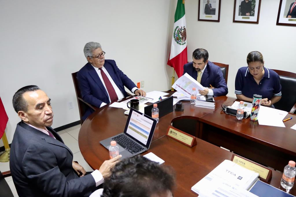 Para revisar los procedimientos y metas del TFCA, el Magistrado Presidente Plácido Morales Vázquez, presidió la reunión de COCODET, al que asisten los Presidentes Magistrados de las Salas y la Contralora Interna, Lic. Patricia Quintero Catalán.