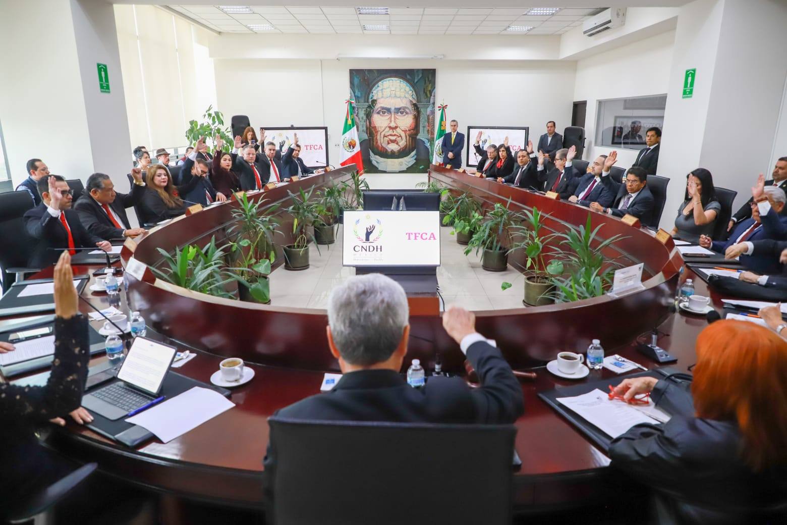 El Tribunal Federal de Conciliación y Arbitraje y la Comisión Nacional de los Derechos Humanos tienen el compromiso de construir acuerdos de coordinación para caminar juntos y velar porque los derechos laborales sean respetados, expresó el Magistrado Presidente del TFCA Cristóbal Arias Solís al recibir como invitada de honor en la Sesión Décima Tercera del Pleno a la Presidenta de la #CNDH Rosario Piedra Ibarra.