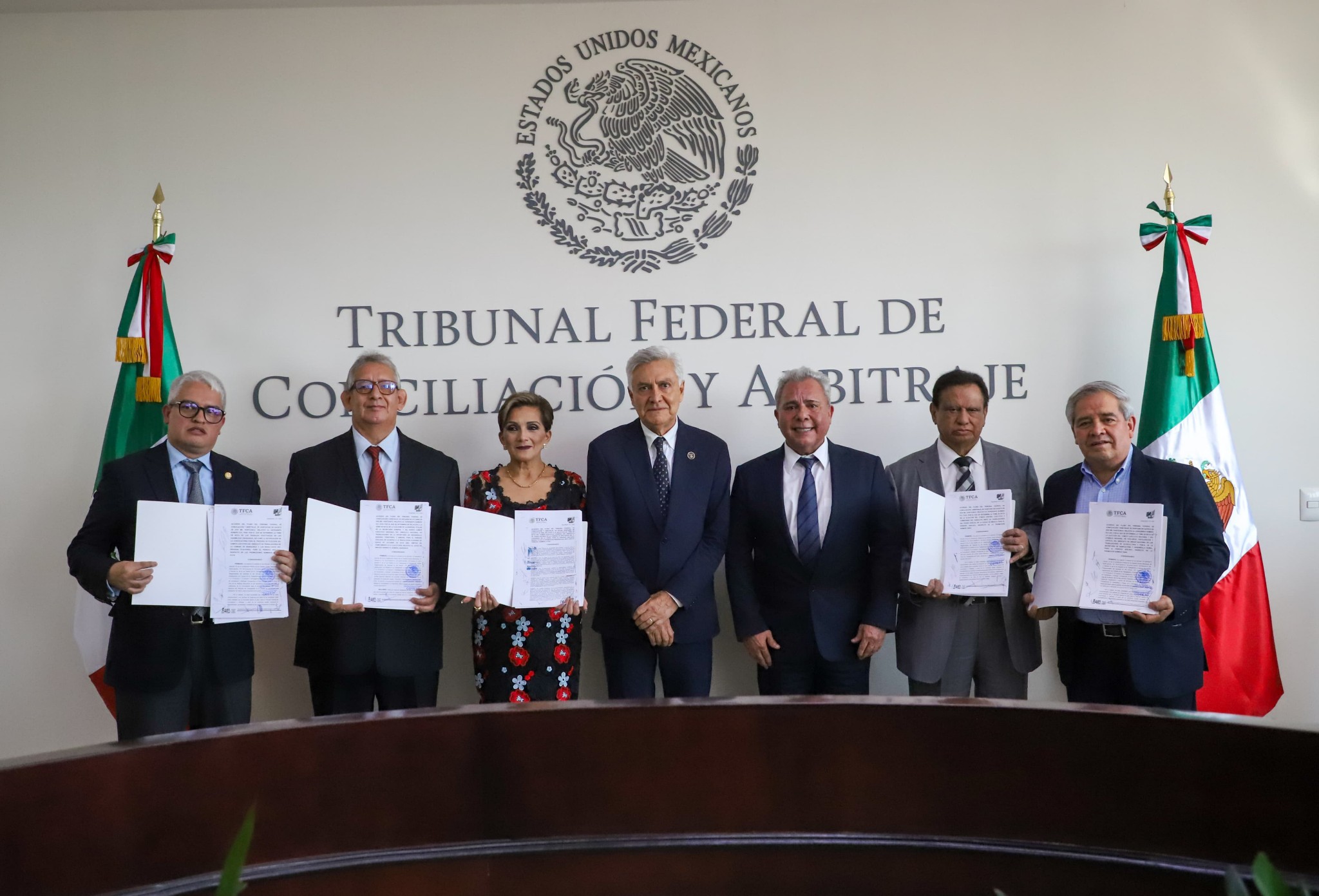 Recibieron las Tomas de Nota los dirigentes del Sindicato de Unidad Nacional de Acuacultura y Pesca, del Sindicato de Trabajadores del Poder Judicial de la Ciudad de México, del Sindicato de la Cámara de Diputados del H. Congreso de la Unión, del Sindicato de Trabajadores de la Cámara de Senadores y del Sindicato de Trabajadores de la Secretaría de Desarrollo Agrario Territorial y Urbano.