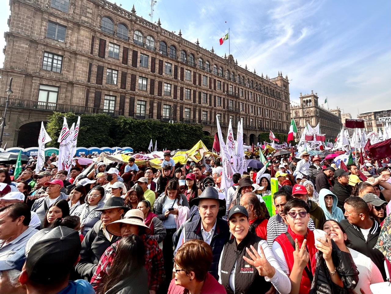 El Magistrado Presidente del Tribunal Federal de Conciliación y Arbitraje, Cristóbal Arias Solís, Magistradas, Magistrados y trabajadores, junto con la Secretaria de Gobernación Rosa Icela Rodríguez, acudieron a manifestar su respaldo a la Presidenta de México.