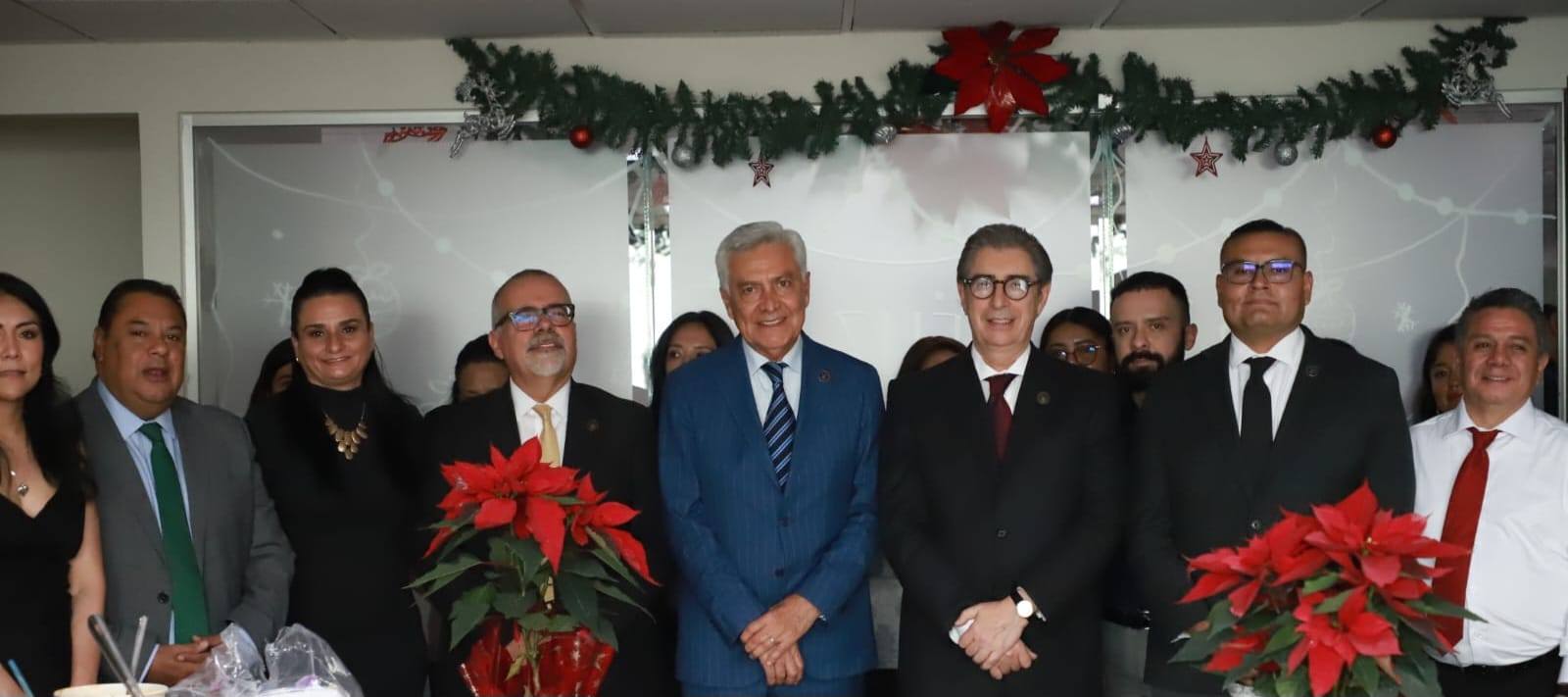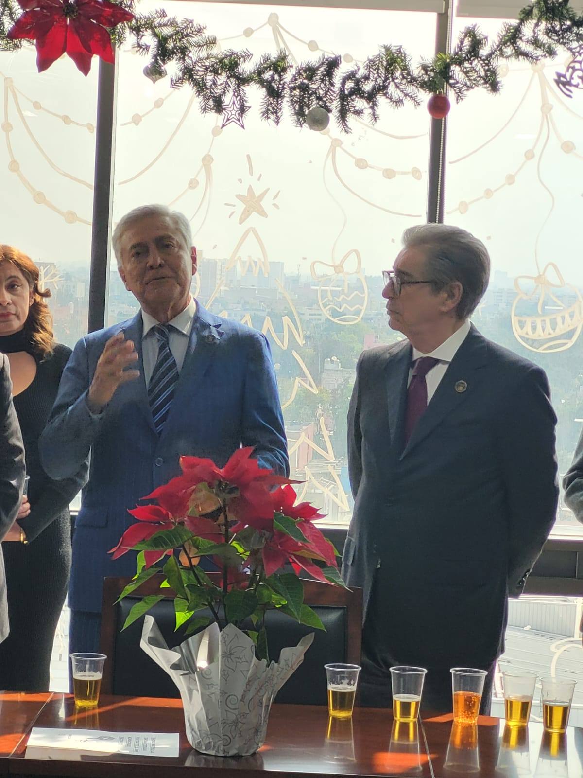 En compañía de los Magistrados, Fernando Ignacio Tovar y de Teresa, Presidente de la Séptima Sala, Jorge Arturo Flores Ochoa y José Manuel Pozos Valdivia, el Magistrado Presidente del Tribunal Federal de Conciliación y Arbitraje, Cristóbal Arias Solís, compartió un mensaje de felicitación y sus mejores deseos en estas fechas, para las y los integrantes de esta Sala.