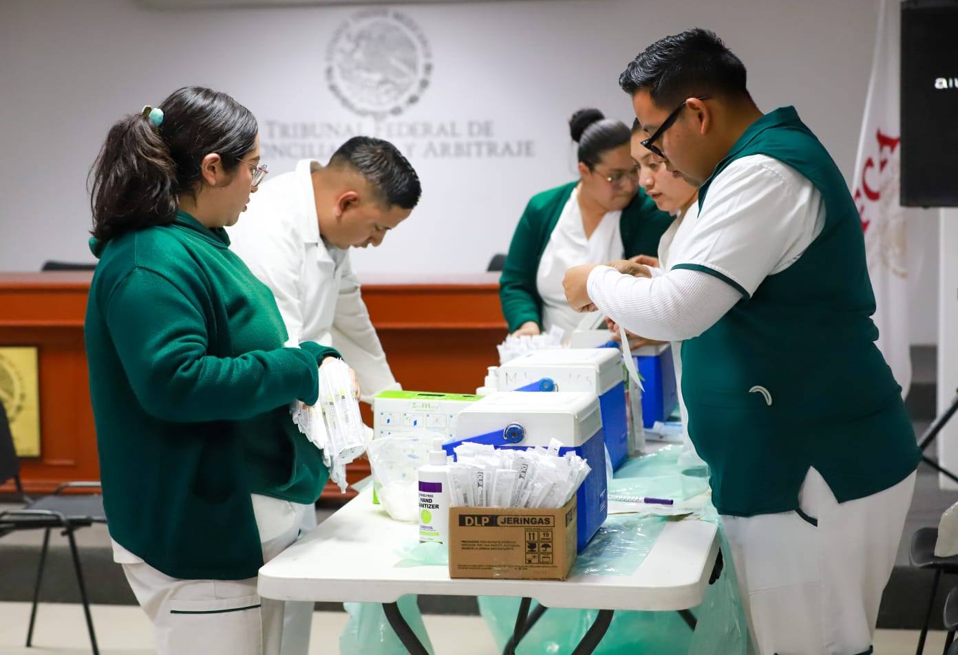Gracias a las gestiones del Magistrado Presidente del Tribunal Federal de Conciliación y Arbitraje , Cristóbal Arias Solís, y a la colaboración del Instituto Mexicano del Seguro Social se efectuó la tercera campaña de vacunación.