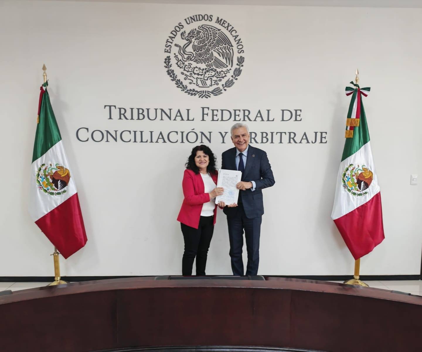 Ortelia Bautista Pardo, Secretaría General del Sindicato de Trabajadores del Tribunal Superior de Justicia de la Ciudad de México, recibió de manos del Magistrado Presidente del Tribunal Federal de Conciliación y Arbitraje , Cristóbal Arias Solís, la toma de nota del Registro Sindical 02/06 que da fe legalmente de la elección de la directiva sindical.