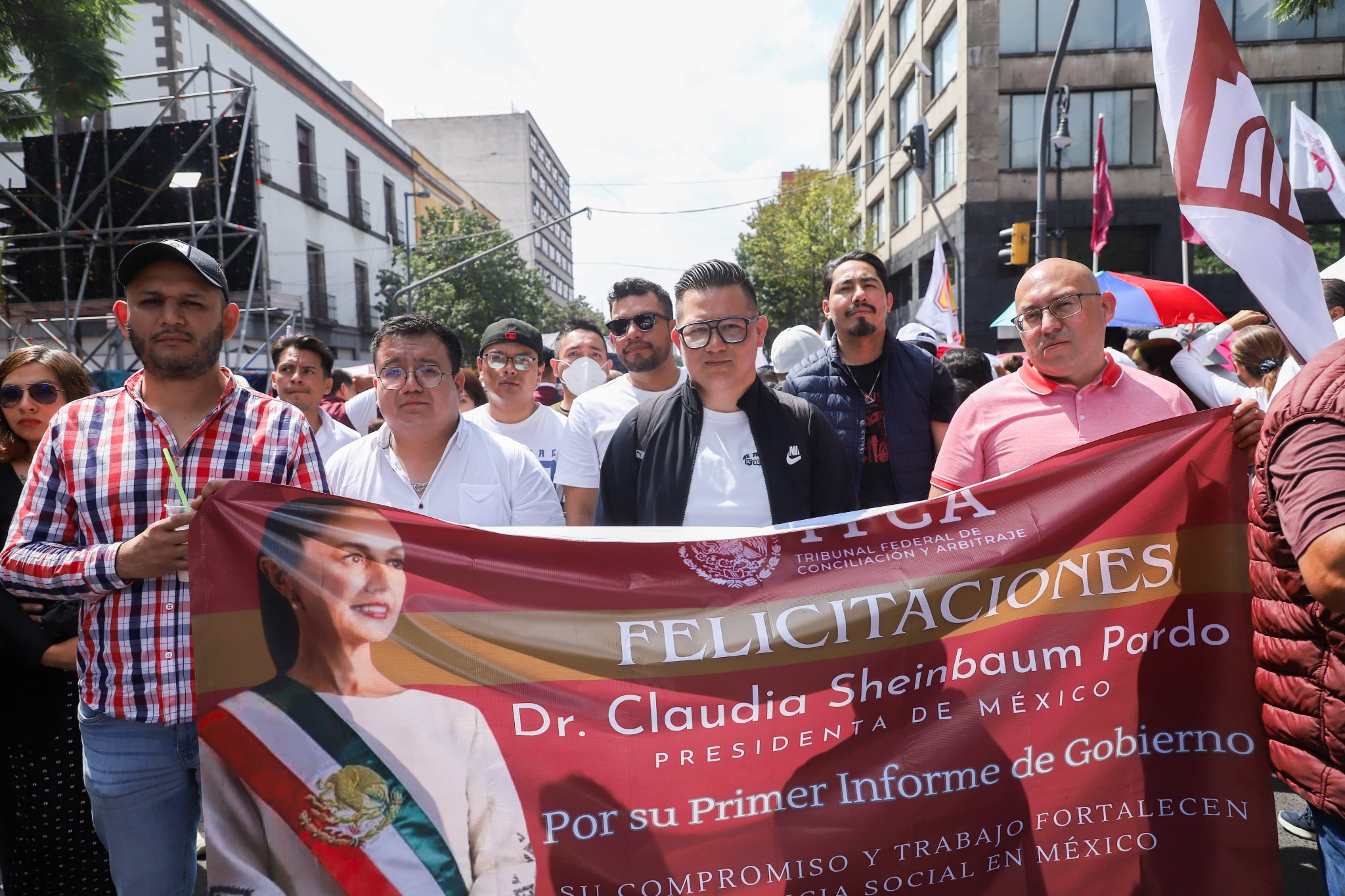 El Magistrado Presidente Cristóbal Arias Solís, y un numeroso contingente del TFCA, acudió al Zócalo de la Ciudad de México para participar en el acto de rendición de cuentas "La Transformación Avanza", con el que la Presidenta de la República concluyó su gira nacional para informar los logros de su gobierno.